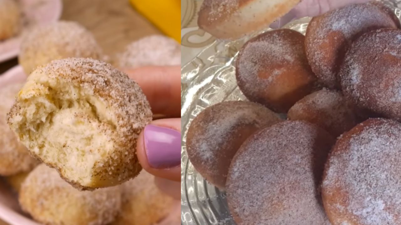 - Ao retirar, passe os bolinhos ainda mornos no açúcar com canela.