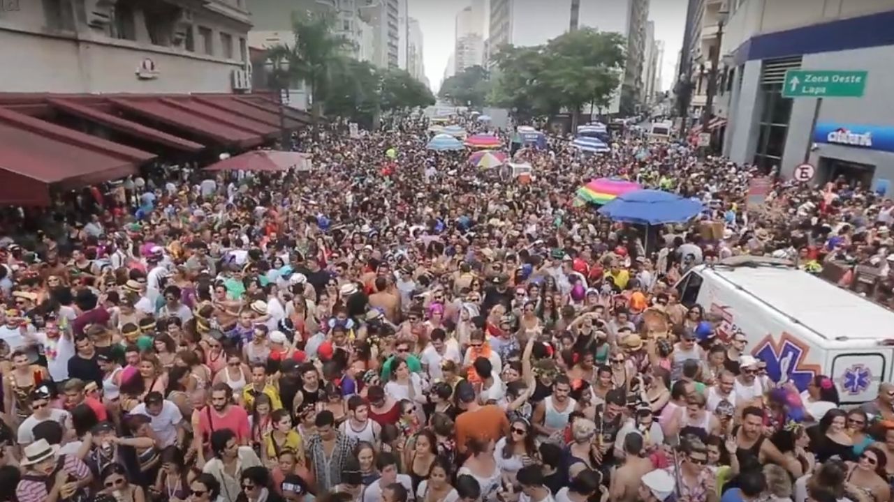 Com o sol brilhando intensamente, o tradicional bloco Tarado Ni Você tomou as ruas do Centro de São Paulo neste sábado (1º), atraindo uma multidão de foliões. A concentração começou cedo, às 9h, na icônica esquina da Avenida Ipiranga com a Avenida São João, celebrizada na música de Caetano Veloso. O desfile teve início por volta das 11h, enquanto os termômetros registravam temperaturas acima dos 32ºC.